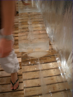 Das coolste war aber die Ecke in der man sich abkühlen konnte. In dieser hatten sie Eisklötze ausgelegt, an denen man sich die Füße kühlen konnte. Rischtisch COOL