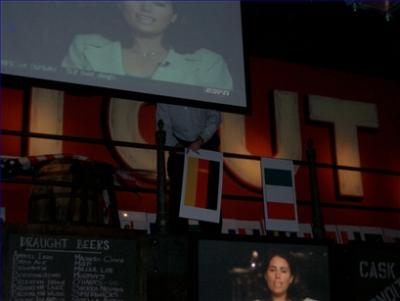 Da hab ich zwei Bilder für euch. Wir haben nämlich die weiteren Spiel, sprich die jenigen die zwischen dem ersten und dem Italien Spiel lagen im Stout geschaut. Die hatten da wirklich ne Menge an dekoration und unter anderem alle Fahnen der Teilnehmer. Schaut euch das mal an: