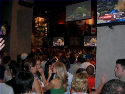 Zum Fussball schauen war sie zum Glück groß genug. Es waren viele Deutsche da, leider auch einige Proleten. Wir schauten also das Spiel auf zwei kleinen Fernsehern die über der Theke hingen.